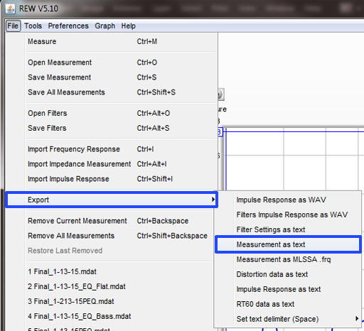 REW Exported Measurement Filename: The filename of the REW exported measurement txt file.