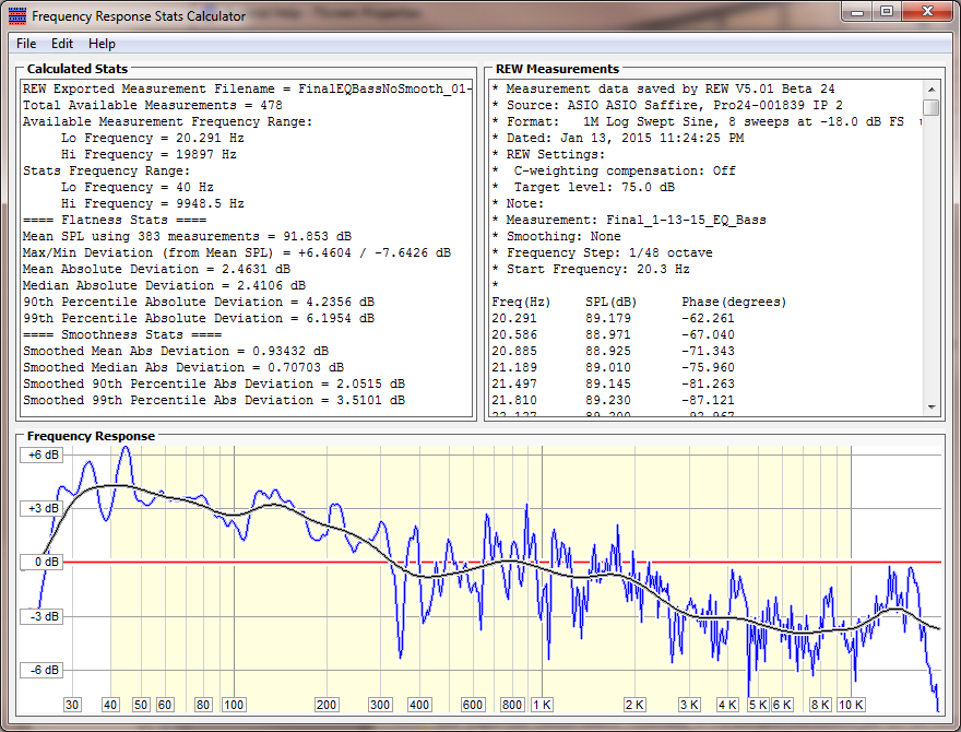 Now run FR Stats Calc and open the REW measurement txt file--