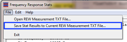Alternately, you can save a txt file which prepends the stats data lines to the REW measurement text. You can either save to a new filename, or the original measurement txt file name. Note-- In some cases, file permissions problems could possibly prevent saving to the original filename, replacing the original file. In which case, select a different filename or file location for the saved .txt file.