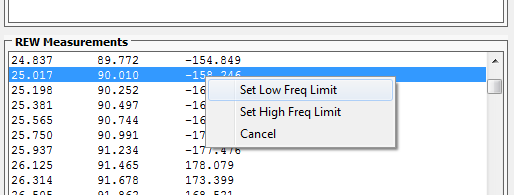 Available Measurement Frequency Range: The lowest and highest frequencies found in the REW exported measurement txt file.