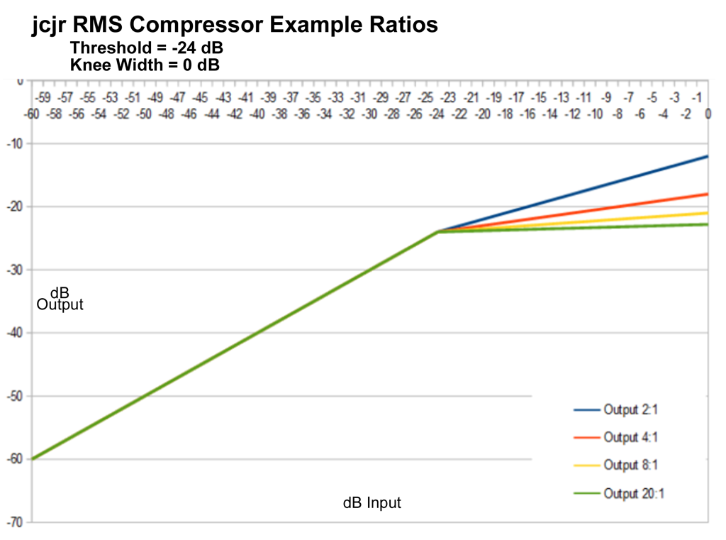 When Knee Width equals 0, RMSComp “instantly” applies the full Ratio when input level exceeds Threshold.