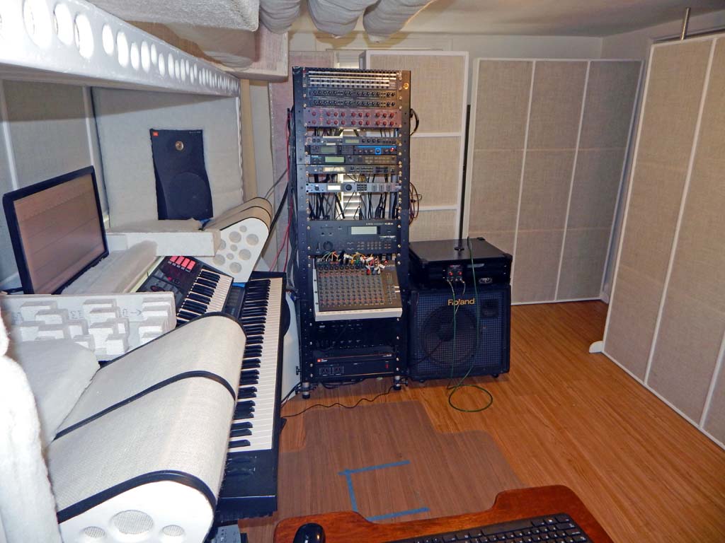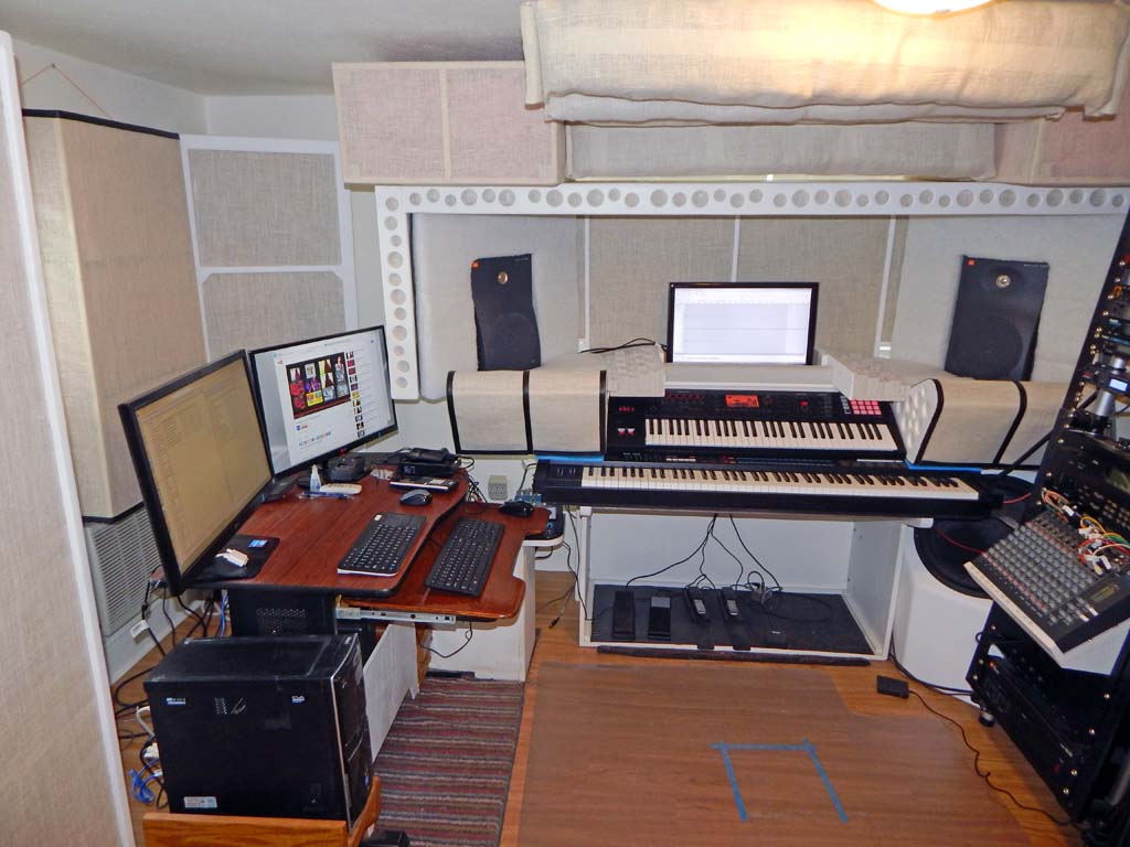 In years past I was not entirely ignorant of acoustics but had not given much thought to acoustics. After setting up the basic equipment in this new space, I spent about six months studying acoustics, performing modest acoustic experiments, and building absorbers. Attempting to make this small room as good-sounding as possible-- As good as it will get while avoiding complete overkill-- Without spending excessive time and money on the project.